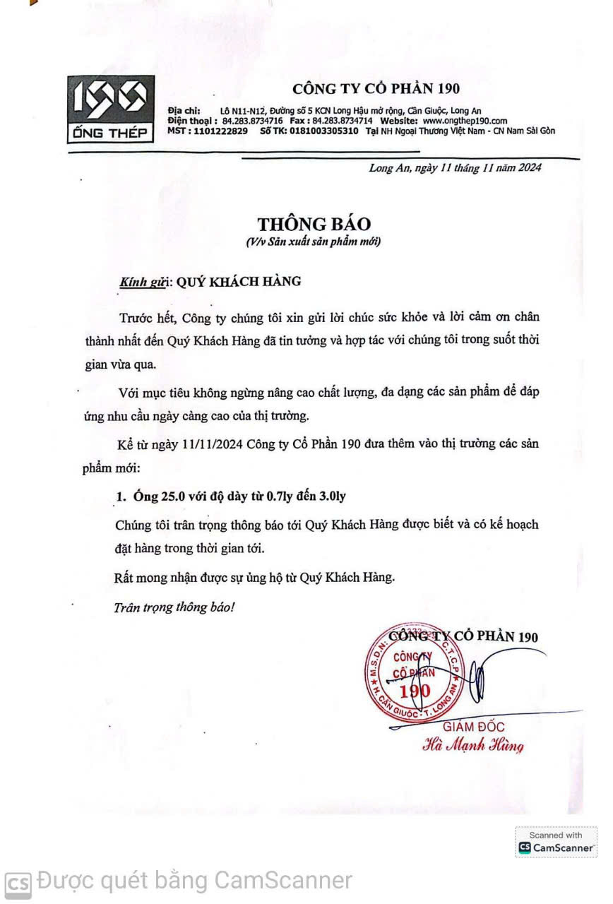 Công ty Cổ phần 190 đưa vào thị trường sản phẩm mới: